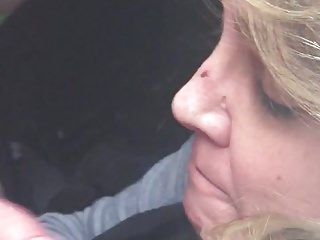 Versaute Hausfrau lutscht Schwanz in der Garage